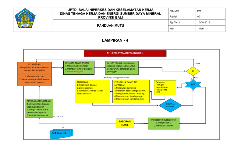 UPTD. BALAI HIPERKES DAN KESELAMATAN KERJA DINAS TENAGA KERJA DAN ENERGI SUMBER DAYA MINERAL PROVINSI BALI No. Dok PM Revisi 00 Tgl Terbit 10-08-2018 Hal 1 dari 1 PANDUAN MUTU LAMPIRAN - 4