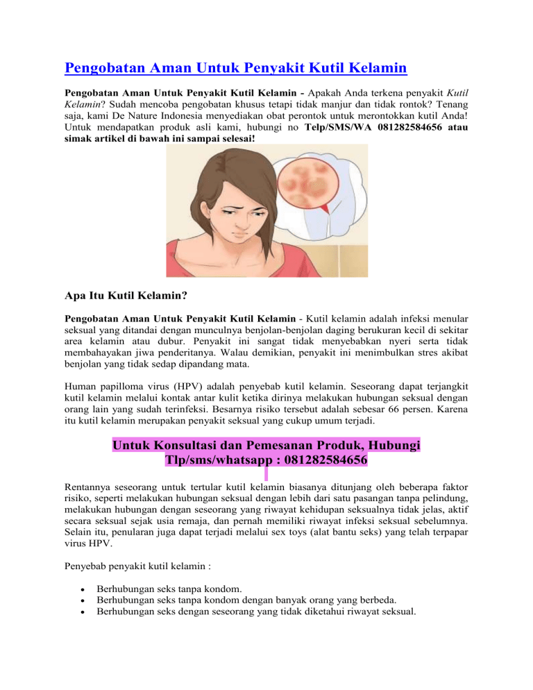 Pengobatan Aman Untuk Penyakit Kutil Kelamin Pengobatan Aman Untuk Penyakit Kutil Kelamin - Apakah Anda terkena penyakit Kutil Kelamin? Sudah mencoba pengobatan khusus tetapi tidak manjur dan tidak rontok? Tenang saja, kami De Nature Indonesia menyediakan obat perontok untuk merontokkan kutil Anda! Untuk mendapatkan produk asli kami, hubungi no Telp/SMS/WA 081282584656 atau simak artikel di bawah ini sampai selesai! Apa Itu Kutil Kelamin? Pengobatan Aman Untuk Penyakit Kutil Kelamin - Kutil kelamin adalah infeksi menular seksual yang ditandai dengan munculnya benjolan-benjolan daging berukuran kecil di sekitar area kelamin atau dubur. Penyakit ini sangat tidak menyebabkan nyeri serta tidak membahayakan jiwa penderitanya. Walau demikian, penyakit ini menimbulkan stres akibat benjolan yang tidak sedap dipandang mata. Human papilloma virus (HPV) adalah penyebab kutil kelamin. Seseorang dapat terjangkit kutil kelamin melalui kontak antar kulit ketika dirinya melakukan hubungan seksual dengan orang lain yang sudah terinfeksi. Besarnya risiko tersebut adalah sebesar 66 persen. Karena itu kutil kelamin merupakan penyakit seksual yang cukup umum terjadi. Untuk Konsultasi dan Pemesanan Produk, Hubungi Tlp/sms/whatsapp : 081282584656 Rentannya seseorang untuk tertular kutil kelamin biasanya ditunjang oleh beberapa faktor risiko, seperti melakukan hubungan seksual dengan lebih dari satu pasangan tanpa pelindung, melakukan hubungan dengan seseorang yang riwayat kehidupan seksualnya tidak jelas, aktif secara seksual sejak usia remaja, dan pernah memiliki riwayat infeksi seksual sebelumnya. Selain itu, penularan juga dapat terjadi melalui sex toys (alat bantu seks) yang telah terpapar virus HPV. Penyebab penyakit kutil kelamin : Berhubungan seks tanpa kondom. Berhubungan seks tanpa kondom dengan banyak orang yang berbeda. Berhubungan seks dengan seseorang yang tidak diketahui riwayat seksual. Stres dan menderita infeksi virus lainnya seperti HIV atau herpes pada waktu yang sama. Tanda-tanda Ciri Penyakit Kutil Kelamin : Pengobatan Aman Untuk Penyakit Kutil Kelamin - Berikut Ciri ciri kutil kelamin pada wanita (Kondiloma Akuminata) atau jengger ayam ini bisa jadi penyakit paling mematikan dunia jika tidak segera di obati. Tidak hanya wanita sajayang patut mewaspadai tentang penyakit kutil kelamin ini, pria pun harus waspada pada munculnya kutil di kelamin tersebut. Berikut ini tanda-tanda atau ciri -ciri kutil kelamin beserta munculnya penyakit kutil kelamin atau jengger ayam yang patut di waspadai : Munculnya Benjolan di kelamin secara bergerombol Benjolan berisi daging Bentuk benjolan kecil Bengkak Kemerahan Menyerupai Jengger Ayam Menyerupai Kembang Kol Terasa Gatal Tidak Nyaman Pendarahan Nyeri Berbau Perih Kutil bisa berdarah Pada wanita muncul di bibir vagina, serviks, vagina Warna Kutil di kelamin hitam agak kemerahan, abu-abu agak kemerahan, cokelat agak kemerahan dan juga merah. Daerah penyebaran kutil kelamin pada Pria: Batang penis. Ujung kepala penis. Selangkangan. Paha bagian atas. Disekitar anus atau bisa didalamnya. Di dalam Uretra. Daerah penyebaran kutil kelamin pada Wanita: Anus. Vulva. Bagian antara anus dan kelamin. Leher Rahim. Paha bagian atas. Bagaimana cara mencegah Penyakit Kutil Kelamin? Untuk mengurangi risiko infeksi kutil kelamin bisa dilakukan dengan berbagai cara, antara lain : Gunakan kondom dengan benar setiap kali Anda berhubungan seks. Setia terhadap pasangan, jangan berganti-ganti partner seks. Membatasi kontak seksual hanya dengan satu pasangan yang benar-benar steril. Pertanyaan yang sering terpikirkan di benak Anda : Jika Saya terlanjur kena kutil kelamin bagaimana cara mengobatinya? Bagaimana cara mengobati kutil kelamin dengan cepat dan tuntas? Bagaimana berobat yang mudah tanpa perlu malu untuk ke dokter? Jawabannya: semua bisa, asal Anda memilih produk yang tepat, yaitu Gang Jie Gho Siah Pipeca dan Kapsul BD De Nature. Pengobatan Penyakit Kutil Kelamin Pengobatan Aman Untuk Penyakit Kutil Kelamin- Pengobatan Kutil Kelamin secara tradisional yaitu dengan menggunakan Obat Kutil Kelamin dari De Nature. Produk yang terbuat dari bahan herbal alami diramu dengan resep tradisional dan diolah secara teknologi modern, sehingga aman di konsumsi. Jadi anda juga tak perlu khawatir karena Obat Herbal De Nature yang kami tawarkan ini, Alhamdulillah, merupakan obat yang telah banyak menyembuhkan penderitanya baik dari dalam maupun luar negeri. Sudah banyak pasien kami yang merasakan kesembuhannya dengan mengonsumsi obat herbal dari De Nature. Rp 950.000,Pemesanan obat hubungi tlp/sms/whatsapp : 081282584656 Sekedar informasi untuk kenyamanan Konsumen, bahwa Produk dari perusahaan kami ini sudah memiliki: Ijin Resmi Perusahaan dari Kementerian Kesehatan Ijin BPOM, yang artinya sudah lulus uji stabilitas Produk Sertifikat Halal MUI, sehingga halal bisa dipertanggungjawabkan Apoteker yang sudah berpengalaman Sudah melewati Proses Sortir Bahan Baku, Guna Menjaga Mutu Produk Proses Produksi Sesuai Alur CPOTB (Cara Pembuatan Obat Tradisional Yang Baik Dan Benar). Cara Pembelian: Pembayaran terlebih dulu via transfer Bank, setelah transfer SMS-kan konfirmasinya untuk proses pengiriman. Format Pemesanan: Nama, Alamat Lengkap beserta kode Pos, Nama Bank / Rekening anda, Nominal transfer, Nama Obat yg dipesan, No.Hp Anda Agar pesanan Anda bisa segera diproses, segera konfirmasikan pembayaran Anda via Telp/SMS/WA ke 081282584656 Setelah itu barang kami kirim melalui TIKI / JNE / J&T / POS. CONTOH SMS KONFIRMASI: Ahmad Husein, Jl.Raya Perumas Cendana Asri No.95, Kecamatan Majenang, Kabupaten Cilacap, Provinsi Jawa Tengah Kode Pos 53257, Rekening Pentransfer atas Nama Ahmad Husein, Transfer 320rb, Obat Eksim, 081xxxxxxxxx INFO LENGKAP HUBUNGI KAMI: Telp/SMS/WA ke 081282584656 Sistem Pembayaran : Nikmati pembayaran yang aman dan nyaman melalui Bank BRI, BNI, BCA, dan Mandiri. Jasa Pengiriman : Barang Kami Kirim via POS, JNE atau TIKI Sesuai Kesepakatan Dan Permintaan Konsumen. Sesuai Deng