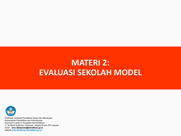 MATERI 2: EVALUASI SEKOLAH MODEL Direktorat Jenderal Pendidikan Dasar dan Menengah Kementerian Pendidikan dan Kebudayaan Gedung E Lantai 5, Kompleks Kemendikbud Jl. Jenderal Sudirman, Senayan, Jakarta Pusat, DKI Jakarta email [email protected] website pmp.dikdasmen.kemdikbud.go.id Tujuan • Sekolah mampu mengevaluasi SPMI berdasarkan rapor mutu • Sekolah mampu mengevaluasi SPMI berdasarkan deskripsi kualitatif • Sekolah mampu menetapkan rencana perbaikan yang akan dilakukan tahun 2018 dan seterusnya. Kegiatan • Paparan oleh Fasilitator • Peserta melakukan evaluasi umum pelaksanaan SPMI dengan mengisi form. • Fasilitator mendampingi saat peserta berdiskusi. • Peserta menampilkan hasil diskusi di depan kelas • Fasilitator memberikan penguatan PENGEMBANGAN SEKOLAH MODEL JUMLAH SEKOLAH MODEL 3,509 SD 1,876 SMP 6,985 SEKOLAH *) 911 SMA 689 SMK *) Berdasarkan Peta Mutu 2017 DIREKTORAT • Pelatihan • Pendampingan • Monitoring dan Evaluasi SEKOLAH RUJUKAN • Pelatihan • Pendampingan • M&E • Pelatihan • Pendampingan • M&E LPMP • Pelatihan • Pendampingan • Monitoring dan Evaluasi • Studi banding • Magang • Sosialisasi • Pendampingan SEKOLAH MODEL • Sosialisasi • Pendampingan PEMERINTAH DAERAH/ TPMPD • Pelatihan • Pendampingan • Monitoring dan Evaluasi • Pendanaan SEKOLAH SEKOLAH • Studi banding • Magang SEKOLAH SEKOLAH SEKOLAH SEKOLAH SEKOLAH SEKOLAH RUJUKAN/MODEL AKAN“BERMANFAAT SECARA NASIONAL” BILA DIIMBASKAN Evaluasi sekolah model untuk menjamin perbaikan yang dilakukan sesuai dengan kebutuhan dan efektif memperbaiki mutu sekolah sesuaj SNP 1. Peta mutu pendidikan di SP Rapor Sekolah 2. Analisis kualitatif bersama pemangku kepentingan 8 SNP © © © © © © © © Standar Kompetensi Lulusan Standar Isi Standar Proses Standar Penilaian Standar Pendidik dan Tenaga Kependidikan Standar Pengelolaan Standar Pembiayaan Standar Sarana dan Prasarana Baseline Skor : x Kondisi awal Penilaian I : Skor : x+y Kondisi Setelah pelatihan dan pendampingan Pelatihan dan pendampingan awal penjaminan mutu Penilaian II : Skor : x+y+z Kondisi Setelah 6 bulan implementasi dst………….. Kondisi Setelah 1 tahun Pendampingan penjaminan mutu Pendampingan penjaminan mutu Pendampingan penjaminan mutu 5 JADWAL PROGRAM KERJA TAHUN ANGGARAN 2018 JAN - MAR APR - JUN Evaluasi Perangkat JUL - SEP Pengembangan Pedoman/Juknis PMP Pengembangan Aplikasi Pemetaan OKT - DES Evaluasi Sistem Pendidikan di level wilayah (dikdas dan dikmen) Formula Pre-Akreditasi Diagnosi Pre-Akreditasi Pemeliharaan dan Pengembangan SIM PMP Koordinasi dg LPMP Koordinasi dg Pemda Implementasi & Pendampingan kepada Sekolah Model Penetapan Penambahan TPMPD Evaluasi Sekolah Model Konsultasi pengembang an Sekolah SPMI Implementasi & Pendampingan kepada Sekolah Model Pendampingan Proses Pengimbasan Seminar Provinsi SPMI Implementasi TPMPD dalam penerapan SPME dan pendampingan SPMI Penyegaran FASNAS TPMPD Bimbingan Teknis TPMPD Penyegaran FASNAS PEMETAAN Penyegaran FASDA PEMETAAN Evaluasi Peran & Kemampuan TPMPD Pendampingan kepada TPMPD (termasuk Dinas) Pelatihan Pengawas Pengumpulan Data Mutu Verifikasi Penyusunan Peta dan Rekomendasi peningkatan Mutu Monitoring Evaluasi 1 Kegiatan Pusat Kegiatan LPMP Kegiatan Dinas Seminar Nasional SPMI Evaluasi 2 Laporan MANFAAT HASIL EVALUASI RAPOR MUTU EVALUASI SEKOLAH MODEL KENDALA KRITIK/SARAN PRESTASI EVALUASI KUALITATIF TESTIMONIAL BEST PRACTICES 1. PENYEMPURNAAN SISTEM 2. AKURASI DATA PERANCANGAN SESUAI KONTEKS 3. PENGEMBANG AN SDM 4. PENGIMBASAN EVALUASI BERDASARKAN PETA/RAPOR MUTU Evaluasi berbasis Rapor Mutu Sekolah SMAN JAYALAH NEGERIKU kode Standar/indikator/Sub Indikator CAPAIAN SNP 1 2016 2017 4.6 5.0 Standar Kompetensi Lulusan 6.1 6.4 Lulusan memiliki kompetensi pada dimensi sikap 6.9 6.8 1.1.1. Memiliki perilaku yang mencerminkan sikap beriman dan bertakwa kepada Tuhan YME 1.1.10. Memiliki perilaku sehat jasmani dan rohani 7.0 6.4 6.8 7.0 1.1.2. Memiliki perilaku yang mencerminkan sikap berkarakter 7.0 7.0 1.1.3. Memiliki perilaku yang mencerminkan sikap disiplin 7.0 7.0 1.1.4. Memiliki perilaku yang mencerminkan sikap santun 7.0 7.0 1.1.5. Memiliki perilaku yang mencerminkan sikap jujur 7.0 7.0 1.1.6. Memiliki perilaku yang mencerminkan sikap peduli 7.0 6.8 1.1.7. Memiliki perilaku yang mencerminkan sikap percaya diri 6.5 6.6 1.1.8. Memiliki perilaku yang mencerminkan sikap bertanggungjawab 1.1.9. Memiliki perilaku pembelajar sejati sepanjang hayat 7.0 7.0 6.7 6.3 Lulusan memiliki kompetensi pada dimensi pengetahuan 5.0 5.2 1.2.1. Memiliki pengetahuan faktual, prosedural, konseptual, metakognitif 1.3. Lulusan memiliki kompetensi pada dimensi keterampilan 5.0 5.2 6.3 6.5 1.3.1. Memiliki keterampilan berpikir dan bertindak kreatif 6.0 6.4 1.3.2. Memiliki keterampilan berpikir dan bertindak produktif 5.6 5.9 1.3.3. Memiliki keterampilan berpikir dan bertindak kritis 6.1 6.3 1.3.4. Memiliki keterampilan berpikir dan bertindak mandiri 6.6 7.0 1.3.5. Memiliki keterampilan berpikir dan bertindak kolaboratif 7.0 7.0 1.3.6. Memiliki keterampilan berpikir dan bertindak komunikatif 6.6 6.5 1.1. 1.2. kode Standar/indikator/Sub Indikator 2 Standar Isi 2.1. Perangkat pembelajaran sesuai rumusan kompetensi lulusan 2.1.1. Memuat karakteristik kompetensi sikap 2.1.2. Memuat karakteristik kompetensi pengetahuan 2.1.3. Memuat karakteristik kompetensi keterampilan 2.1.4. Menyesuaikan tingkat kompetensi siswa 2.1.5. Menyesuaikan ruang lingkup materi pembelajaran 2.2. Kurikulum Tingkat Satuan Pendidikan dikembangkan sesuai prosedur 2.2.1. Melibatkan pemangku kepentingan dalam pengembangan kurikulum 2.2.2. Mengacu pada kerangka dasar penyusunan 2.2.3. Melewati tahapan operasional pengembangan 2.2.4. Memiliki perangkat kurikulum tingkat satuan pendidikan yang dikembangkan 2.3. Sekolah melaksanakan kurikulum sesuai ketentuan 2.3.1. Menyediakan alokasi waktu pembelajaran sesuai struktur kurikulum yang berlaku 2.3.2. Mengatur beban belajar bedasarkan bentuk pendalam