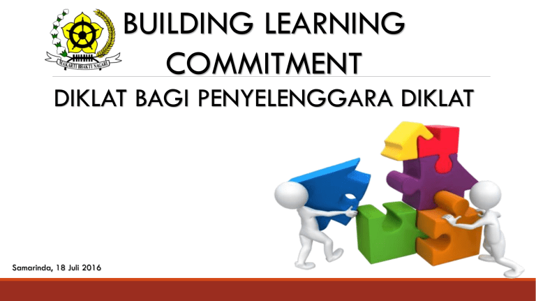 BUILDING LEARNING COMMITMENT DIKLAT BAGI PENYELENGGARA DIKLAT Samarinda, 18 Juli 2016 AGENDA PEMBELAJARAN HASIL BELAJAR Komitmen apa yang perlu dibangun dalam kelas selama Diklat? TERIMA KASIH