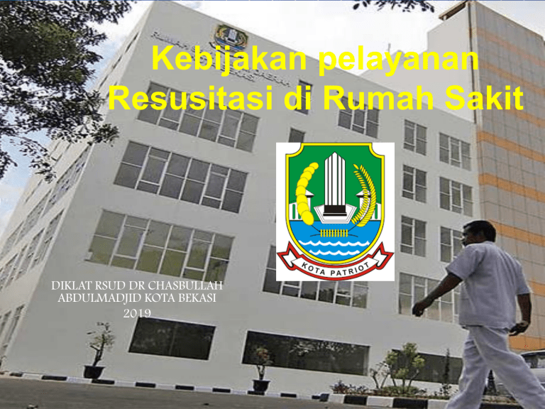 Kebijakan pelayanan Resusitasi di Rumah Sakit DIKLAT RSUD DR CHASBULLAH ABDULMADJID KOTA BEKASI 2019 Dr. Kusnanto Saidi, MARS PENDAHULUAN • Kejadian Kritis henti jantung dapat terjadi dimana dan kapan saja di Rumah Sakit dan lingkungannya • Cardiac arrest berhentinya fungsi jantung secara tiba-tiba pada seseorang yang telah atau belum diketehui menderita penyakit jantung • Henti jantung apabila tidak ditangani secara cepat akan menyebabkan kematian Code Blue • Pertolongan pertama yang efektif diikuti dengan aktivasi sistem untuk mendatangkan tim bantuan hidup lanjut diharapkan dapat mencegah kematian akibat henti jantung mendadak di rumah sakit. • Diperlukan suatu sistem di rumah sakit yang mengatur bahwa tindakan bantuan hidup dasar dan lanjut dapat dilakukan dengan efektif. • Sistem ini sering disebut dengan aktivasi code blue (kode biru). Code Blue (cont) • Stabilisasi kondisi darurat medis yang terjadi di dalam area rumah sakit. • Code blue harus segera dimulai setiap kali seseorang ditemukan dalam kondisi cardiac atau respiratory arrest dan membutuhkan resusitasi kardiopulmoner Penanganan Henti jantung di Rumah sakit Merupakan suatu kebijakan khusus, bukan hanya soal respon petugas terhadap pasien henti jantung tetapi strategi pencegahan yang melibatkan komponen rumah sakit Early Warning System • Peringatan dini yang dapat diartikan sebagai rangkaian sistem komunikasi informasi yang dimulai dengan deteksi awal, dan pengambilan keputusan sekanjutnya Triage • Adalah proses memilah dan memilih pasien berdasarkan beban penyakit serta memprioritaskan penanganan dan transportasi serta memprediksi sumber daya yang akan diberikan ke pasien kegawatdaruratan medis. Akreditasi SNARS 2018 PAP 3.2. PELAYANAN RESUSITASI TERSEDIA DI SELURUH RUMAH SAKIT Penilaian : 1. Ada regulasi pelayanan resusitasi yang tersedia dan diberikan selama 24 Jam setiap hari di seluruh are rumah sakit serta pelaralatan medis untuk resusitasi dan obat untuk BHD 2. Tatalaksana resusitasi diberikan segera saat dikenal henti jantung-paru dan tindal lanjut < 5 menit 3. Staff diiberikan , pelatihan pelayanan resusitasi TRIAGE SYSTEM IGD Pemilahan awal Ranap dan RAJAL PASIEN GAWAT DARURAT Henti Nafas/Henti Jantung KETERKAITAN ANTARA PELAYANAN CODE BLUE, EWS DAN TRIAGE SYSTEM DI RUMAH SAKIT EWS Henti Nafas/Henti Jantung BANTUAN HIDUP LANJUT Henti Nafas/Henti Jantung CODE BLUE Siste resusitasi Rumah Sakit 3 2 Personel (SDM) Sarana (alat & Obat) Code Blue System 1 Sistem (regulasi yang mengatur) KEBIJAKAN RUMAH SAKIT • Membuat pedoman pelayanan resusitasi pasien gawat dan darurat di rumah sakit • Membuat regulasi sistem pelayanan code blue di rumah sakit • Menyediakan sumber daya terhadap pelayanan resusitasi dirumah sakit