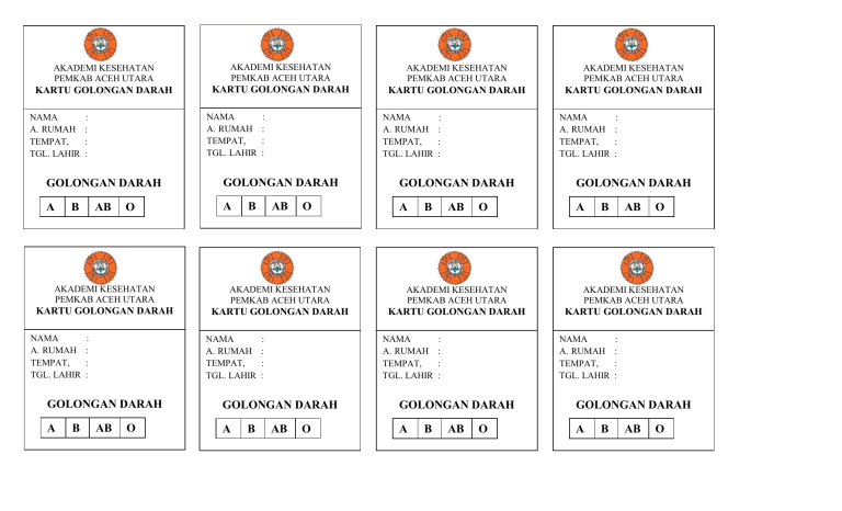 AKADEMI KESEHATAN PEMKAB ACEH UTARA AKADEMI KESEHATAN PEMKAB ACEH UTARA AKADEMI KESEHATAN PEMKAB ACEH UTARA AKADEMI KESEHATAN PEMKAB ACEH UTARA KARTU GOLONGAN DARAH KARTU GOLONGAN DARAH KARTU GOLONGAN DARAH KARTU GOLONGAN DARAH NAMA A. RUMAH TEMPAT, TGL. LAHIR NAMA A. RUMAH TEMPAT, TGL. LAHIR : : : : : : : : NAMA A. RUMAH TEMPAT, TGL. LAHIR : : : : NAMA A. RUMAH TEMPAT, TGL. LAHIR : : : : GOLONGAN DARAH GOLONGAN DARAH GOLONGAN DARAH GOLONGAN DARAH A A A A B AB O B AB O B AB O B AB O AKADEMI KESEHATAN PEMKAB ACEH UTARA AKADEMI KESEHATAN PEMKAB ACEH UTARA AKADEMI KESEHATAN PEMKAB ACEH UTARA AKADEMI KESEHATAN PEMKAB ACEH UTARA KARTU GOLONGAN DARAH KARTU GOLONGAN DARAH KARTU GOLONGAN DARAH KARTU GOLONGAN DARAH NAMA A. RUMAH TEMPAT, TGL. LAHIR : : : : NAMA A. RUMAH TEMPAT, TGL. LAHIR : : : : NAMA A. RUMAH TEMPAT, TGL. LAHIR : : : : NAMA A. RUMAH TEMPAT, TGL. LAHIR : : : : GOLONGAN DARAH GOLONGAN DARAH GOLONGAN DARAH GOLONGAN DARAH A A A A B AB O B AB O B AB O B AB O