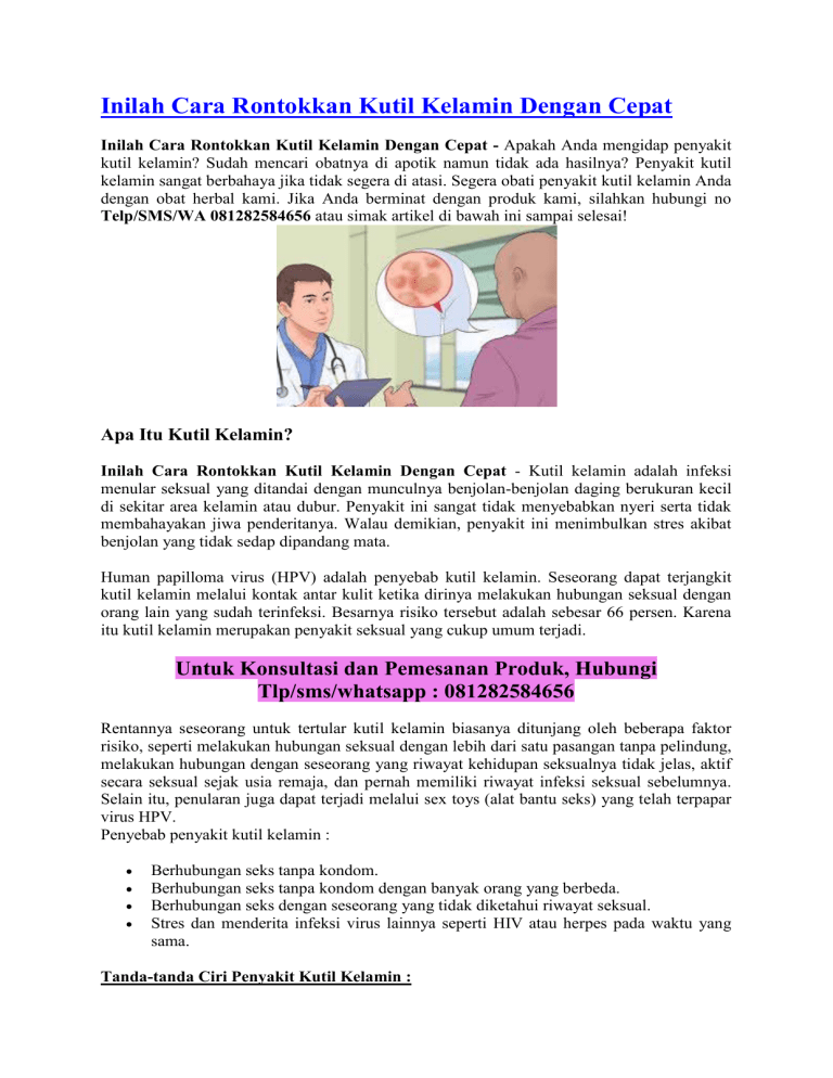 Inilah Cara Rontokkan Kutil Kelamin Dengan Cepat Inilah Cara Rontokkan Kutil Kelamin Dengan Cepat - Apakah Anda mengidap penyakit kutil kelamin? Sudah mencari obatnya di apotik namun tidak ada hasilnya? Penyakit kutil kelamin sangat berbahaya jika tidak segera di atasi. Segera obati penyakit kutil kelamin Anda dengan obat herbal kami. Jika Anda berminat dengan produk kami, silahkan hubungi no Telp/SMS/WA 081282584656 atau simak artikel di bawah ini sampai selesai! Apa Itu Kutil Kelamin? Inilah Cara Rontokkan Kutil Kelamin Dengan Cepat - Kutil kelamin adalah infeksi menular seksual yang ditandai dengan munculnya benjolan-benjolan daging berukuran kecil di sekitar area kelamin atau dubur. Penyakit ini sangat tidak menyebabkan nyeri serta tidak membahayakan jiwa penderitanya. Walau demikian, penyakit ini menimbulkan stres akibat benjolan yang tidak sedap dipandang mata. Human papilloma virus (HPV) adalah penyebab kutil kelamin. Seseorang dapat terjangkit kutil kelamin melalui kontak antar kulit ketika dirinya melakukan hubungan seksual dengan orang lain yang sudah terinfeksi. Besarnya risiko tersebut adalah sebesar 66 persen. Karena itu kutil kelamin merupakan penyakit seksual yang cukup umum terjadi. Untuk Konsultasi dan Pemesanan Produk, Hubungi Tlp/sms/whatsapp : 081282584656 Rentannya seseorang untuk tertular kutil kelamin biasanya ditunjang oleh beberapa faktor risiko, seperti melakukan hubungan seksual dengan lebih dari satu pasangan tanpa pelindung, melakukan hubungan dengan seseorang yang riwayat kehidupan seksualnya tidak jelas, aktif secara seksual sejak usia remaja, dan pernah memiliki riwayat infeksi seksual sebelumnya. Selain itu, penularan juga dapat terjadi melalui sex toys (alat bantu seks) yang telah terpapar virus HPV. Penyebab penyakit kutil kelamin : Berhubungan seks tanpa kondom. Berhubungan seks tanpa kondom dengan banyak orang yang berbeda. Berhubungan seks dengan seseorang yang tidak diketahui riwayat seksual. Stres dan menderita infeksi virus lainnya seperti HIV atau herpes pada waktu yang sama. Tanda-tanda Ciri Penyakit Kutil Kelamin : Inilah Cara Rontokkan Kutil Kelamin Dengan Cepat - Berikut Ciri ciri kutil kelamin pada wanita (Kondiloma Akuminata) atau jengger ayam ini bisa jadi penyakit paling mematikan dunia jika tidak segera di obati. Tidak hanya wanita sajayang patut mewaspadai tentang penyakit kutil kelamin ini, pria pun harus waspada pada munculnya kutil di kelamin tersebut. Berikut ini tanda-tanda atau ciri -ciri kutil kelamin beserta munculnya penyakit kutil kelamin atau jengger ayam yang patut di waspadai : Munculnya Benjolan di kelamin secara bergerombol Benjolan berisi daging Bentuk benjolan kecil Bengkak Kemerahan Menyerupai Jengger Ayam Menyerupai Kembang Kol Terasa Gatal Tidak Nyaman Pendarahan Nyeri Berbau Perih Kutil bisa berdarah Pada wanita muncul di bibir vagina, serviks, vagina Warna Kutil di kelamin hitam agak kemerahan, abu-abu agak kemerahan, cokelat agak kemerahan dan juga merah. Daerah penyebaran kutil kelamin pada Pria: Batang penis. Ujung kepala penis. Selangkangan. Paha bagian atas. Disekitar anus atau bisa didalamnya. Di dalam Uretra. Daerah penyebaran kutil kelamin pada Wanita: Anus. Vulva. Bagian antara anus dan kelamin. Leher Rahim. Paha bagian atas. Bagaimana cara mencegah Penyakit Kutil Kelamin? Untuk mengurangi risiko infeksi kutil kelamin bisa dilakukan dengan berbagai cara, antara lain : Gunakan kondom dengan benar setiap kali Anda berhubungan seks. Setia terhadap pasangan, jangan berganti-ganti partner seks. Membatasi kontak seksual hanya dengan satu pasangan yang benar-benar steril. Pertanyaan yang sering terpikirkan di benak Anda : Jika Saya terlanjur kena kutil kelamin bagaimana cara mengobatinya? Bagaimana cara mengobati kutil kelamin dengan cepat dan tuntas? Bagaimana berobat yang mudah tanpa perlu malu untuk ke dokter? Jawabannya: semua bisa, asal Anda memilih produk yang tepat, yaitu Gang Jie Gho Siah Pipeca dan Kapsul BD De Nature. Pengobatan Penyakit Kutil Kelamin Inilah Cara Rontokkan Kutil Kelamin Dengan Cepat- Pengobatan Kutil Kelamin secara tradisional yaitu dengan menggunakan Obat Kutil Kelamin dari De Nature. Produk yang terbuat dari bahan herbal alami diramu dengan resep tradisional dan diolah secara teknologi modern, sehingga aman di konsumsi. Jadi anda juga tak perlu khawatir karena Obat Herbal De Nature yang kami tawarkan ini, Alhamdulillah, merupakan obat yang telah banyak menyembuhkan penderitanya baik dari dalam maupun luar negeri. Sudah banyak pasien kami yang merasakan kesembuhannya dengan mengonsumsi obat herbal dari De Nature. Rp 950.000,Pemesanan obat hubungi tlp/sms/whatsapp : 081282584656 Sekedar informasi untuk kenyamanan Konsumen, bahwa Produk dari perusahaan kami ini sudah memiliki: Ijin Resmi Perusahaan dari Kementerian Kesehatan Ijin BPOM, yang artinya sudah lulus uji stabilitas Produk Sertifikat Halal MUI, sehingga halal bisa dipertanggungjawabkan Apoteker yang sudah berpengalaman Sudah melewati Proses Sortir Bahan Baku, Guna Menjaga Mutu Produk Proses Produksi Sesuai Alur CPOTB (Cara Pembuatan Obat Tradisional Yang Baik Dan Benar). Cara Pembelian: Pembayaran terlebih dulu via transfer Bank, setelah transfer SMS-kan konfirmasinya untuk proses pengiriman. Format Pemesanan: Nama, Alamat Lengkap beserta kode Pos, Nama Bank / Rekening anda, Nominal transfer, Nama Obat yg dipesan, No.Hp Anda Agar pesanan Anda bisa segera diproses, segera konfirmasikan pembayaran Anda via Telp/SMS/WA ke 081282584656 Setelah itu barang kami kirim melalui TIKI / JNE / J&T / POS. CONTOH SMS KONFIRMASI: Ahmad Husein, Jl.Raya Perumas Cendana Asri No.95, Kecamatan Majenang, Kabupaten Cilacap, Provinsi Jawa Tengah Kode Pos 53257, Rekening Pentransfer atas Nama Ahmad Husein, Transfer 320rb, Obat Eksim, 081xxxxxxxxx INFO LENGKAP HUBUNGI KAMI: Telp/SMS/WA ke 081282584656 Sistem Pembayaran : Nikmati pembayaran yang aman dan nyaman melalui Bank BRI, BNI, BCA, dan Mandiri. Jasa Pengiriman : Barang Kami Kirim via POS, JNE atau