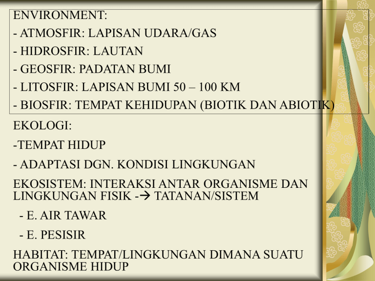 - BIOSFIR: TEMPAT KEHIDUPAN (BIOTIK DAN ABIOTIK)