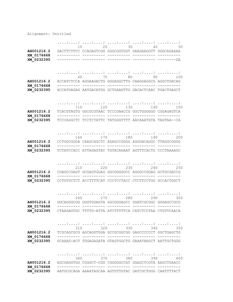 Alignment: Untitled AH001216.2 XM_0176668 XM_0232395 ....|....| ....|....| ....|....| ....|....| ....|....| 10 20 30 40 50 GACTTCTTCC CCAGAGTCGG GGGCGGTGGT GAAGAAGGTT GGGCAGAAAA ---------- ---------- ---------- ---------- ------------------- ---------- ---------- ---------- --------GA AH001216.2 XM_0176668 XM_0232395 ....|....| ....|....| ....|....| ....|....| ....|....| 60 70 80 90 100 ACCATCTCCA AGGAAGACTG GGGAGGCTTG CAAGGAGGCG AGGCTGACAG ---------- ---------- ---------- ---------- ---------ACCATGAGAG AATGACATGG GCTGAAGTTG GACACTCAAC TGACTGAGCT AH001216.2 XM_0176668 XM_0232395 ....|....| ....|....| ....|....| ....|....| ....|....| 110 120 130 140 150 TCACGTAGTG GGCGCGTAAC TCCCGAACCG GGCTGGGGGG CGGAGAGTCA ---------- ---------- ---------- ---------- ---------TCCCAGGCTC TCCTCTATTC TATGGGTTTT AACAAATGTA TAGTAA--CA AH001216.2 XM_0176668 XM_0232395 ....|....| ....|....| ....|....| ....|....| ....|....| 160 170 180 190 200 CCTGGCGGGA CAAGCAGCTC AGAGCCGGGG AGGGACAGGC TTAGGCGGGG ---------- ---------- ---------- ---------- ---------TCTATCCACC ATTAGAGTAC TGTACAGAAT AGTTTCACTG CCCTAAAAGC AH001216.2 XM_0176668 XM_0232395 ....|....| ....|....| ....|....| ....|....| ....|....| 210 220 230 240 250 CGAGCCGAGT GCGAGTGGAG GGCGGGGGCC AGGGCCGGAG GCTGCGACCG ---------- ---------- ---------- ---------- ---------CCTGTGCTCT ACCTTTTCAT CCCTCCTACC CTCTTCCTGG GCCACTGGCT AH001216.2 XM_0176668 XM_0232395 ....|....| ....|....| ....|....| ....|....| ....|....| 260 270 280 290 300 GGCAGGGCGG GGGTGGAGTA GGCGGGAGCC GGATCGCGGC GGGAGCCGCG ---------- ---------- ---------- ---------- ---------CTAAGAGTGC TTTTG-ATTA ATCTTTTTCA CATCTCCTAA CTGTTCAACA AH001216.2 XM_0176668 XM_0232395 ....|....| ....|....| ....|....| ....|....| ....|....| 310 320 330 340 350 TCGCAGCGCG AGCAGGTGGA GCCGCGGCGG GAGCCCCCCT GGCTGAGCTG ---------- ---------- ---------- ---------- ---------GCAAAG-ACT TGGAGAGATA GTAGTGGCTG GAAATAAGCT AATTGCTGGG AH001216.2 XM_0176668 XM_0232395 ....|....| ....|....| ....|....| ....|....| ....|....| 360 370 380 390 400 AGCGAGGTGG CGGGCT-CGG CGGGGGCCAT GGAGCTCGTA AAGCTGAACC ---------- ---------- ---------- ---------- ---------AATGCGCAGA AAAATAGCAA AGTGTTGTAC GATCGCTGGG CAATTTTACT AH001216.2 XM_0176668 XM_0232395 ....|....| ....|....| ....|....| ....|....| ....|....| 410 420 430 440 450 GGAGCGTGCA GGGATCCGGA CCGGTGGCTT CCCTATGCCG CCCGGGTGGC ---------- ---------- ---------- ---------- ---------GGAACTT-TG TCCCTCTAGT TTTCAGGAGT CCCCATGCAG ATTGGG-AAC AH001216.2 XM_0176668 XM_0232395 ....|....| ....|....| ....|....| ....|....| ....|....| 460 470 480 490 500 CCCCTCCTCA ACAACAGCGG TACCGGCAAC CTCAGCTGCG AGCCCCCGCG ---------- ---------- ---------- ---------- ---------TTGATAAGAG TGGGCATCAT CTCATCTTTC TGCTCCACCA AGTTCAAAGA AH001216.2 XM_0176668 XM_0232395 ....|....| ....|....| ....|....| ....|....| ....|....| 510 520 530 540 550 CATCCGCGGA GCCGGGACAC GAGGTGGGTG CCTCCCTA-C GCCCGCGCCA ---------- ---------- ---------- ---------- ---------CACACATGGG ATACATCAGC TGGGTGAATG AATGAGAAAT GTGCTTTTCA AH001216.2 XM_0176668 XM_0232395 ....|....| ....|....| ....|....| ....|....| ....|....| 560 570 580 590 600 CAAGCTCCTT CTCACTGCAC CCCATAACAC TCATATCGAC CCCCACGATG ---------- ---------- ---------- ---------- ---------TACTTCAGGG TGTGTACTGA CTTGAGGTGT GGTTATTGAC TCAAGAACTA AH001216.2 XM_0176668 XM_0232395 ....|....| ....|....| ....|....| ....|....| ....|....| 610 620 630 640 650 ATCTTAACAT TGCATATCCA AACGCCACGG GATCCNNNNN NNNNNNNNNN ---------- ---------- ---------- ---------- ---------GTTGAAGAGA GACATCCAGA GGAGGATCTG AAAAAGATGA TAGAATGGAG AH001216.2 XM_0176668 XM_0232395 ....|....| ....|....| ....|....| ....|....| ....|....| 660 670 680 690 700 NNNNNNNNNN NNNNNNNNNN NNNNNNNNNN NNNNNNNNNN NNNNNNNNNN ---------- ---------- ---------- ---------- ---------AGATTAAGGA AAGTGGAGGG GTGGGGGCGG TAGACTGGAA GGAGACAAAA AH001216.2 XM_0176668 XM_0232395 ....|....| ....|....| ....|....| ....|....| ....|....| 710 720 730 740 750 NNNNNNNNNN NNNNNNNNNN NNNNNNNNNN NNNNNGAGCT CCCACA-GTT ---------- ---------- ---------- ---------- ---------AGTACAGGAT AGAATATTAG CTCACACACA CCTCAAATTT GCTACACATA AH001216.2 XM_0176668 XM_0232395 ....|....| ....|....| ....|....| ....|....| ....|....| 760 770 780 790 800 CCTCATACTC CCTCAAACTC ACTCCTACCA CACATCATCT GCTTACAAAT ---------- ---------- ---------- ---------- ---------AGCCTTCCTT GCAGAAAGGG AGACATGTCT CCAAAGAGAC AGAGGCAGAG AH001216.2 XM_0176668 XM_0232395 ....|....| ....|....| ....|....| ....|....| ....|....| 810 820 830 840 850 CTGAGTTTCC CTTTCTACTG TGAACTATCA GATGTCAGGG AGTGCCTGAT ---------- ---------- ---------- ---------- ---------AGGAGGGCAT GCTGGAGCTT TAGAGGCACA GAGGTGAAGC ATGGATGGGG AH001216.2 XM_0176668 XM_0232395 ....|....| ....|....| ....|....| ....|....| ....|....| 860 870 880 890 900 TTTCATCTCT TTGTCCCCAG TGCCTGGCAC AGAAGGAATC TACTGTAAAT ---------- ---------- ---------- ---------- ---------CAGGACAAAG CAGGTGCATT TGTGTGGAGA GTGAAAGAGA TTCGTTCAAG AH001216.2 XM_0176668 XM_0232395 ....|....| ....|....| ....|....| ....|....| ....|....| 910 920 930 940 950 GTTGAATGAG AATGAATGTC TGGAGATAAT TAAAATAGAA GGTAGAAAGT ---------- ---------- ---------- ---------- ---------ATTCATTAGC CA-GCATGTG TGAACACCTC CTATTTGCAG GACATTATGC AH001216.2 XM_0176668 XM_0232395 ....|....| ....|....| ....|....| ....|....| ....|....| 960 970 980 990 1000 AAAATGGGCT CTAATGGATG CATAAGGAAT ATGTATAGAT CAGAGAAAGT ---------- ---------- ---------- ---------- ---------TAAGTG---C CAGGGATATG CAGAAGAATG ATCTGGGCAT T---GCCCCT AH001216.2 XM_0176668 XM_0232395 ....|....| ....|....| ....|....| ....|....| ....|....| 1010 1020 1030 1040 1050 GGAGATTAAT ATCGAATGAG GCATCCAGAA AGGCCTTACA GAAGAGGTGG ---------- ---------- ---------- ---------- ---------GTCCTCAAGA AGCTCATAGT CCAGTGGAGG AGATACAGAA TTAAACATAA AH001216.2 XM_0176668 XM_0232395 ....|....| ....|....| ....|....| ....|....| ....|....| 1060 1070 1080 1090 1100 CAATCTACCT GAGTTTTGAT AAACAAGGGA TAAATAGGAA TTCACCAGTA ---------- ---------- ---------- ---------- ---------TAATACAG-T GAGCAATGCC ACACTGGAGT ACAGAGAGGC AGAAAGAGGC AH001216.2 XM_01
