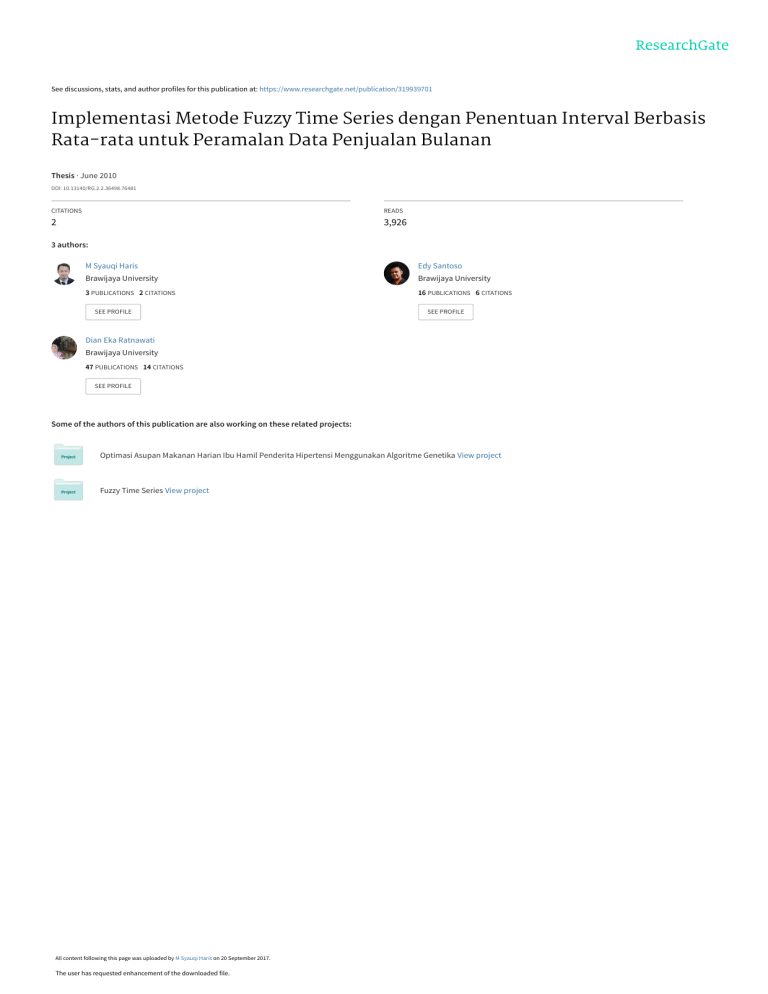 Implementasi Metode Fuzzy Time Series dengan Penentuan Interval Berbasis
