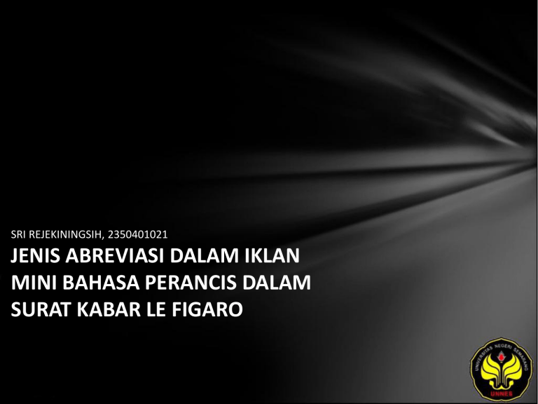 SRI REJEKININGSIH, 2350401021 JENIS ABREVIASI DALAM IKLAN MINI BAHASA PERANCIS DALAM SURAT KABAR LE FIGARO Identitas Mahasiswa - NAMA : SRI REJEKININGSIH - NIM : 2350401021 - PRODI : Sastra Perancis - JURUSAN : BAHASA & SASTRA ASING - FAKULTAS : Bahasa dan Seni - EMAIL : - PEMBIMBING 1 : Dra.Diah Vitri W.,DEA - PEMBIMBING 2 : Dra. Dwi Astuti, MP.d - TGL UJIAN : 2007-02-12 Judul JENIS ABREVIASI DALAM IKLAN MINI BAHASA PERANCIS DALAM SURAT KABAR LE FIGARO Abstrak Abstrak belum ditemukan Terima Kasih http://unnes.ac.id