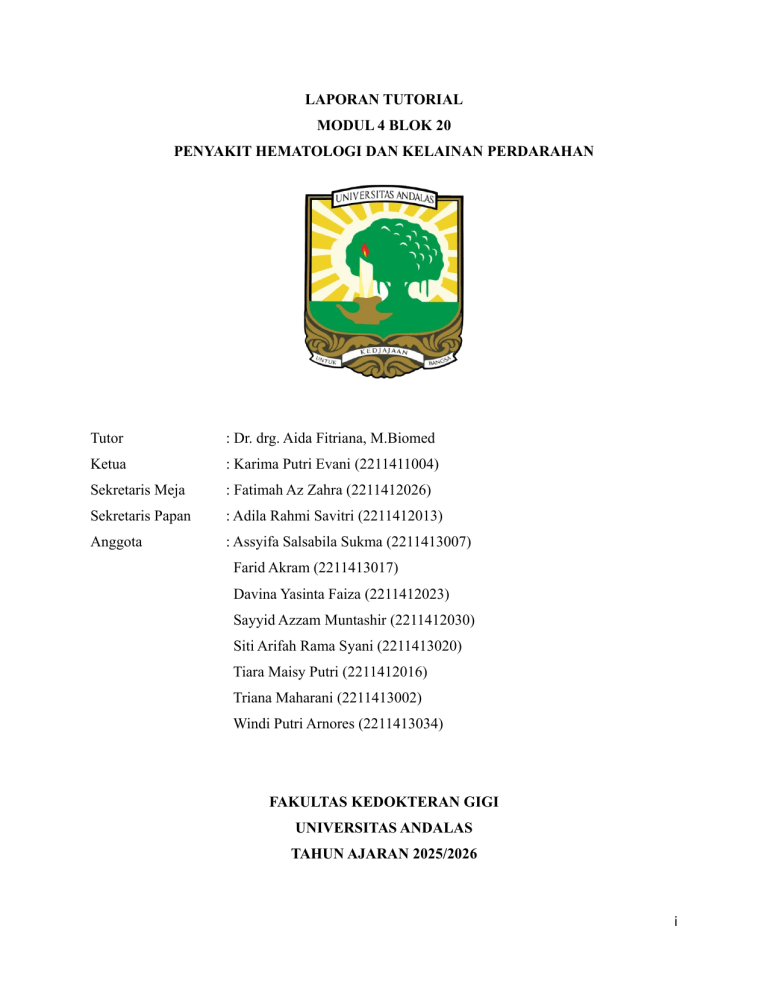 kami dapat menyelesaikan laporan tutorial yang berjudul “Penyakit Hematologi dan Kelainan