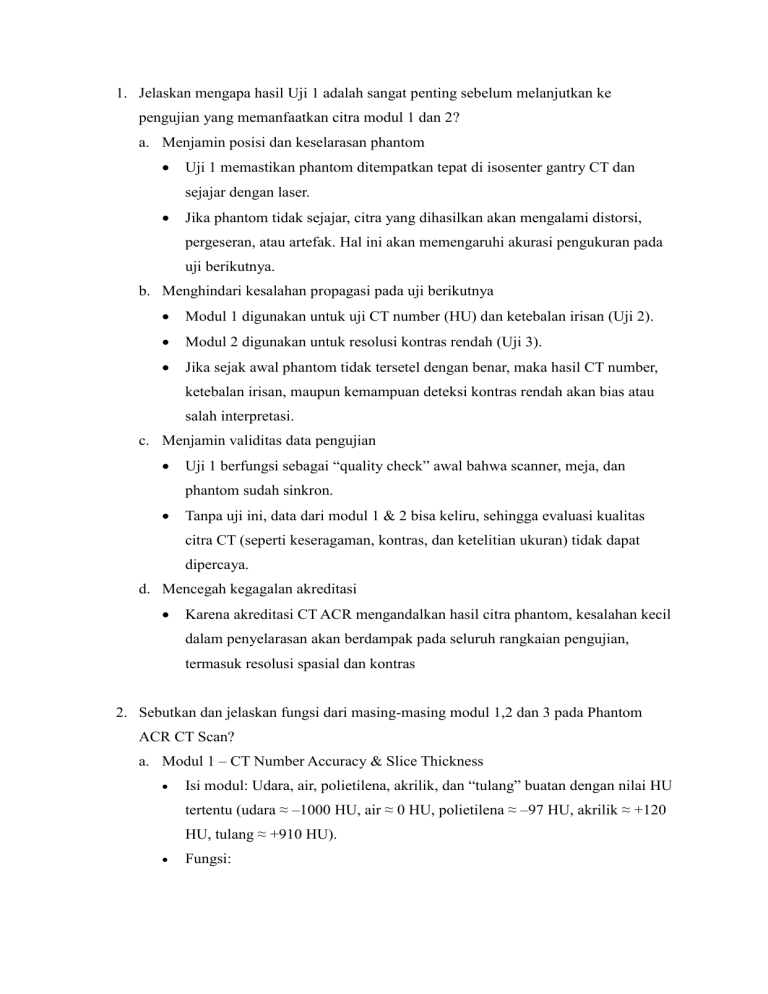 Modul 1 digunakan untuk uji CT number (HU) dan ketebalan irisan (Uji 2).